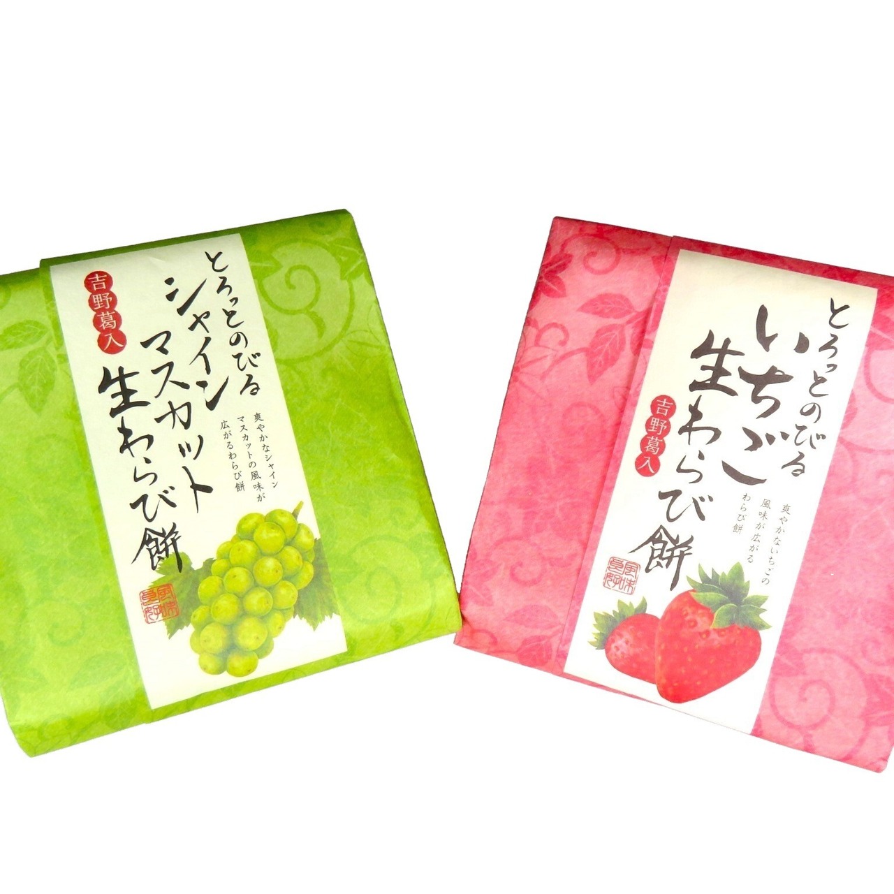 吉野葛入り とろ~っとのびる いちご生わらび餅&シャインマスカット生わらび餅