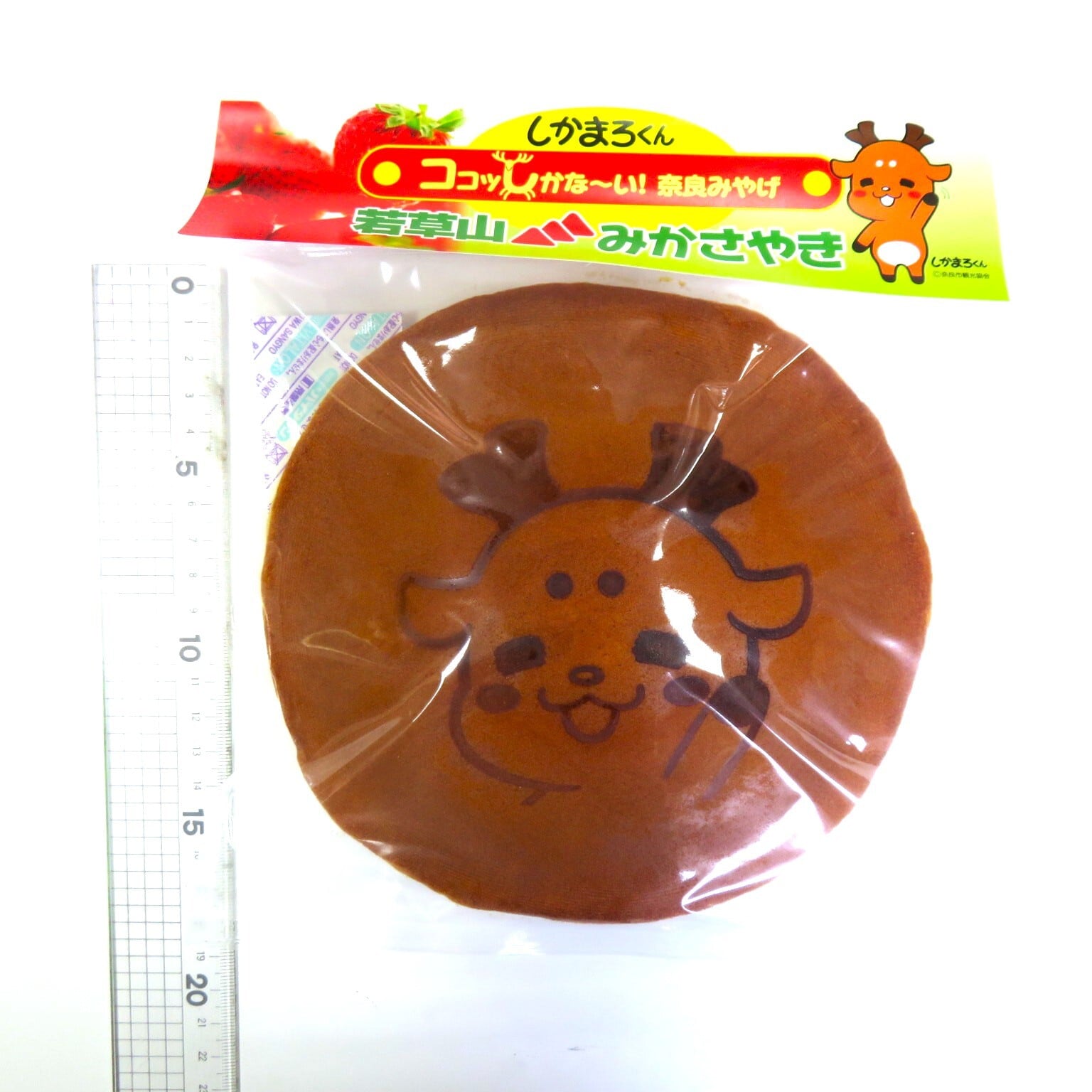 奈良のご当地キャラクターしかまろくんがプリントされていて、とにかく大きさにびっくり。1個食べるとおなか一杯になるので、みんなでシェアがおすすめ!