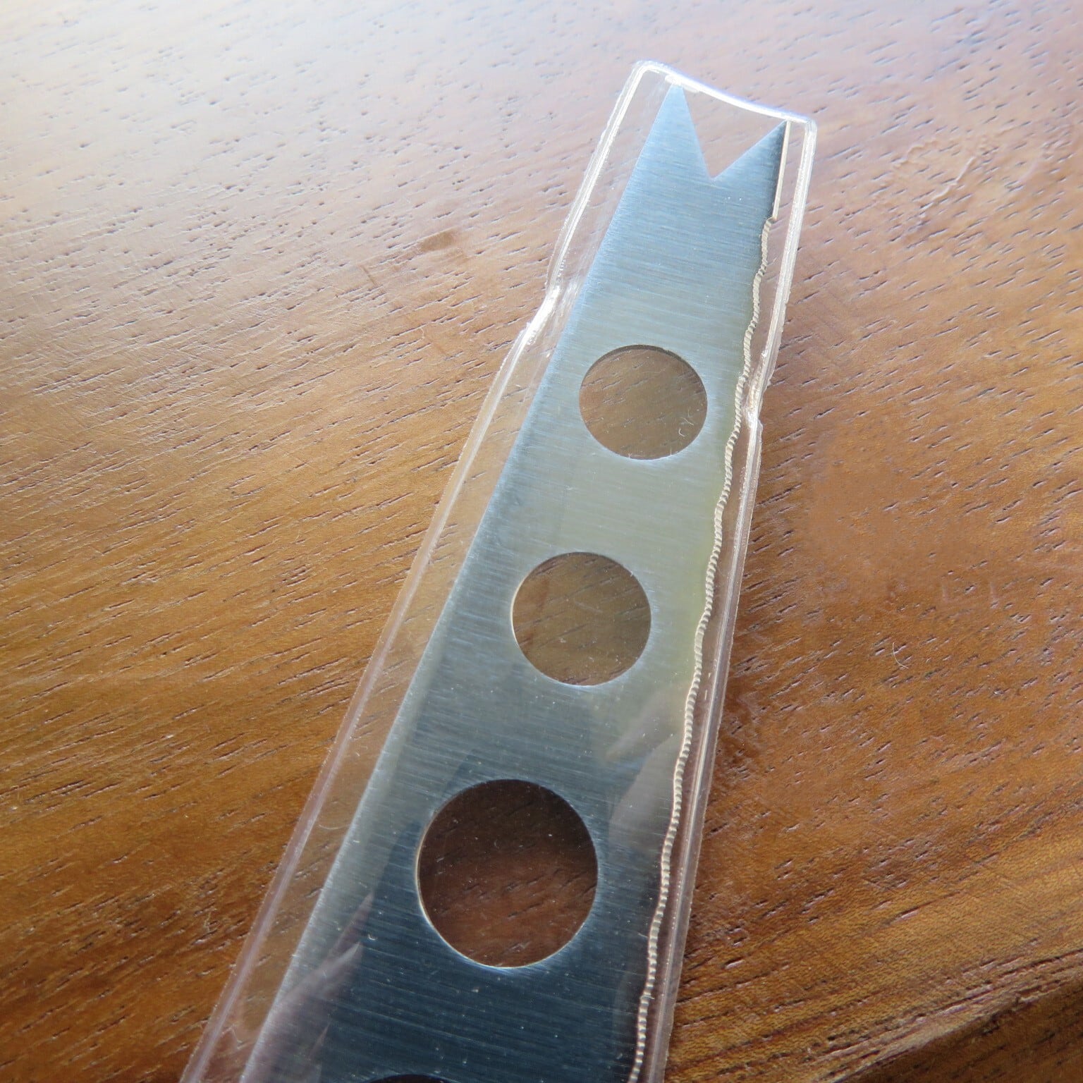 刃の部分に穴が開いているのでくっつきにくく、柔らかいフレッシュチーズやカマンベールチーズなどを切るのに適しています。また、先端がフォークのような形になっているので取り分けやすいです。